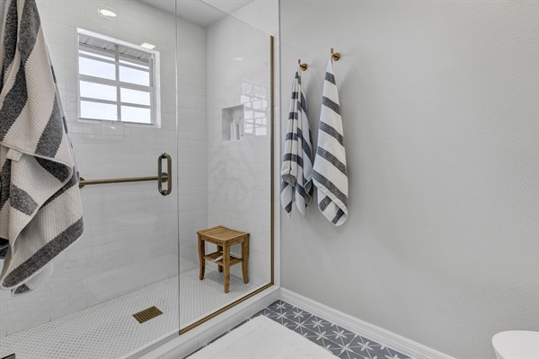 Master Bathroom with walk in shower and hand held shower wand