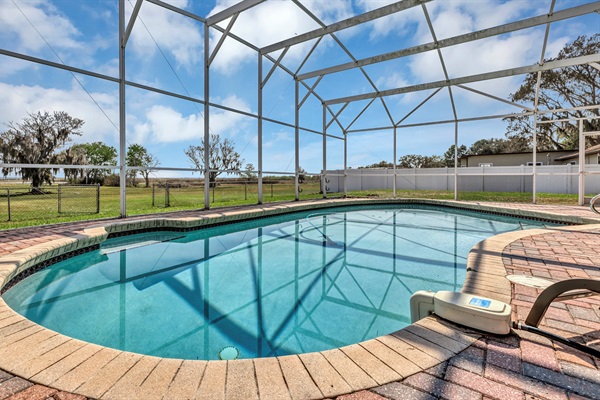 Heated screened in pool.